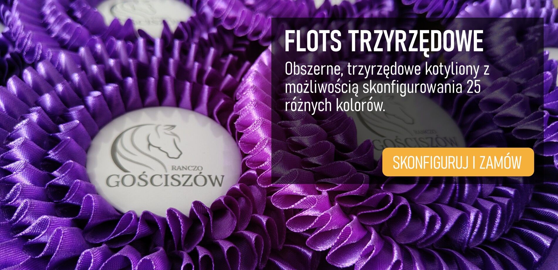 Kotylion potrójny z gęstym plisem to elegancka i efektowna dekoracja, idealna na zawody jeździeckie, Hubertusa oraz inne uroczysto...